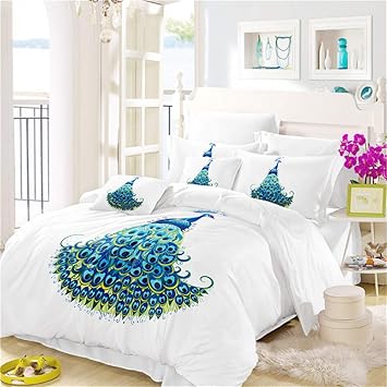 Bettwasche Hand Gezeichnet Farbe Art Pfau Geburstetes