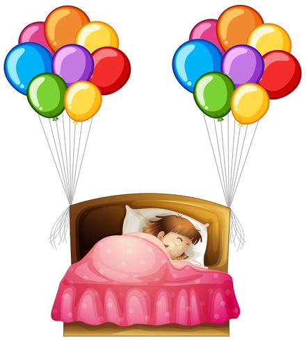 Madchen Im Bett Mit Bunten Luftballons An Den Seiten