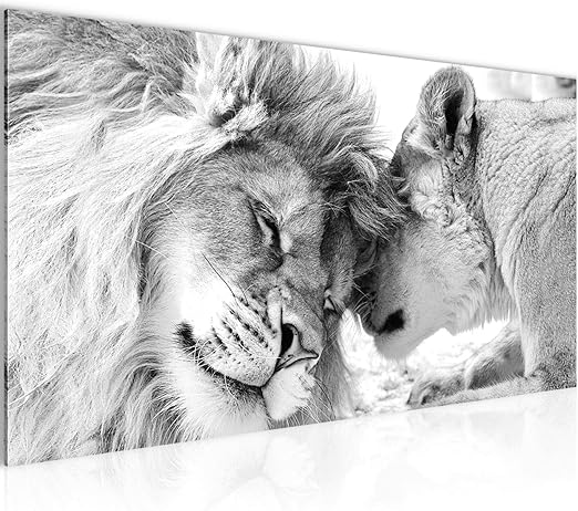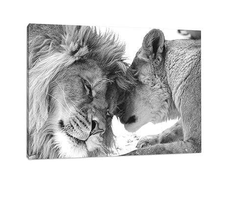Bestforhome Wandbild Schones Bezauberndes Kuschelndes Lowenpaar Lowen In Afrika In Der Savanne Schwarz Weiss Auf Leinwand Riesige Bilder Fertig