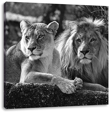 Interessiertes Lowenpaar Kunst B W Format 60x60 Auf