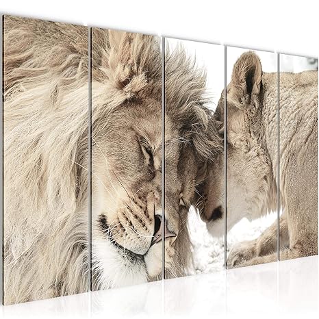 Bilder Lowen Liebe Wandbild 150 X 60 Cm Vlies Leinwand Bild Xxl Format Wandbilder Wohnzimmer Wohnung Deko Kunstdrucke Braun 5 Teilig Made In