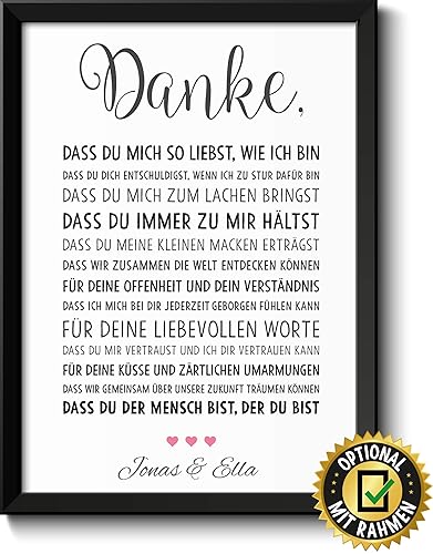 Danke Liebe Liebevolle Liebeserklarung Mit Namen Personalisiert Optional Mit Holz Rahmen Geschenk Geschenkidee Manner Frauen