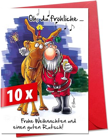 Lustige Humorvolle Weihnachtskarten Mit Umschlag Im 10er Set Motiv Oh Du Frohliche Fur Private Und Geschaftliche Weihnachtsgrusse Als Postkarte