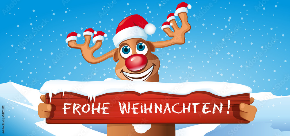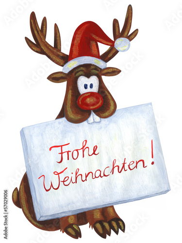 Lustiges Rentier Mit Schild Frohe Weihnachten Buy This