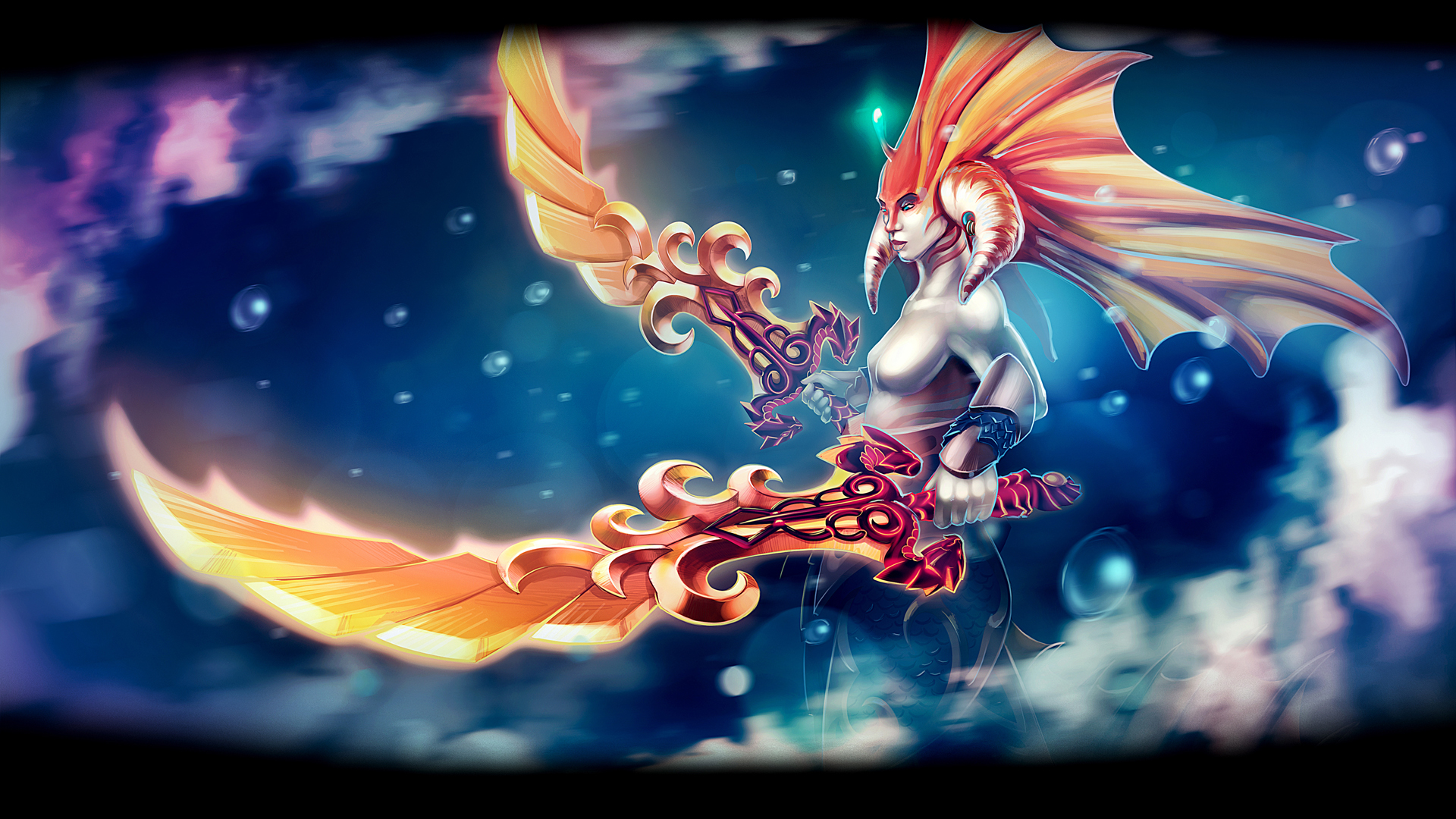 Wallpaper Fantasy Girl Mermaid Jellyfish Tail Sword